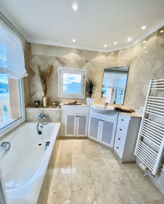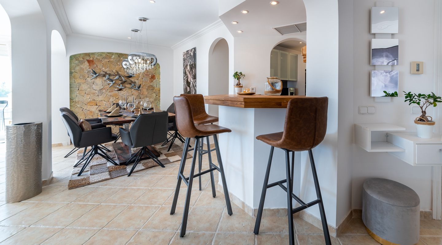 Mit einem durchdachten Raumkonzept, hochwertigen Materialien und maßgeschneiderten Möbeln wurde ein Zuhause geschaffen, das Komfort und Ästhetik perfekt kombiniert. Große Fensterfronten holen das natürliche Licht ins Innere und ermöglichen einen spektakulären Blick auf das Meer.
